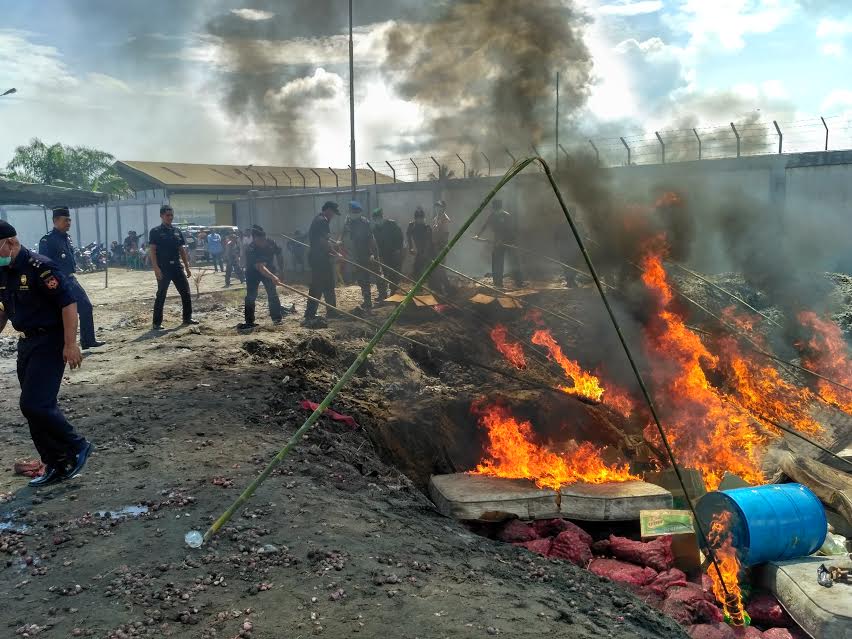 Tipe Madya Pabean B Medan (KPPBC) Tipe Madya Pabean C Teluk Nibung membakar 2.874 karung bawang