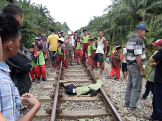 “Dia (korban) tertabrak saat melintas di tengah rel. Tubuhnya terseret kereta api sekitar 50 meter. Warga sempat berteriak ketika kereta api akan melintas, namun sepertinya tidak didengar. Kecelakaan pun tak terhindarkan. Dia tewas tertabrak kereta api jurusan Rantauprapat-Medan,” terang Juamdi.