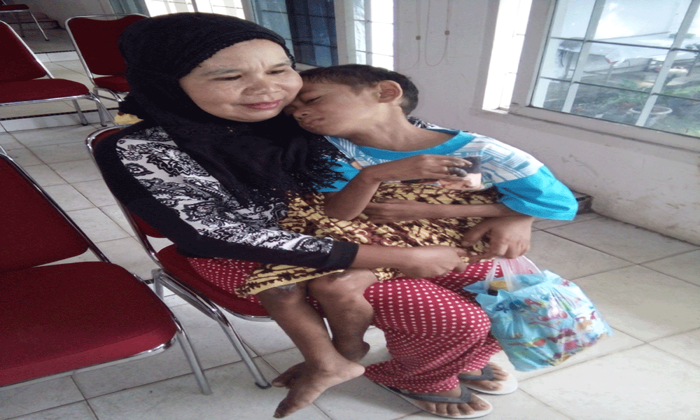 Leli juga mengeluhkan bengkak hitam yang selalu muncul dan kering akibat dibiarkan serta terkadang menumbulkan aroma tidak sedap di tubuh anaknya itu. “Saya tidak bisa berkata apa-apa lagi. Hanya bisa berdo’a, air mata ini sudah bosan menetes dengan sendirinya, kasihan Rahmad,” kata wanita setengah tua ini sambil memeluk erat anaknya.