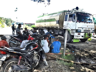 Penghadangan dilakukan oleh puluhan warga di Dusun III, Desa Pulau Maria, Kecamatan Teluk Dalam, Kamis (17/11). Aksi penghadangan ini dilakukan warga Desa Pulau Maria bersama warga Dusun VI Masundung, Desa Batu Anam. Untuk menghadang truk CPO dan pengangkut buah kelapa sawit, mereka membakar ban di tengah bahu jalan.