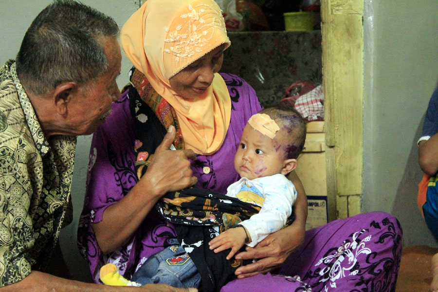 “Alhamdulillah, saat itu dia telentang, jadi masih bisa bernapas. Gak secara langsung batu itu menimpanya. Ada sekitaran dua menit. Untung saya masih melihat tangannya bergerak-gerak,” ungkapnya sambil terus menggendong bayi tangguh itu.