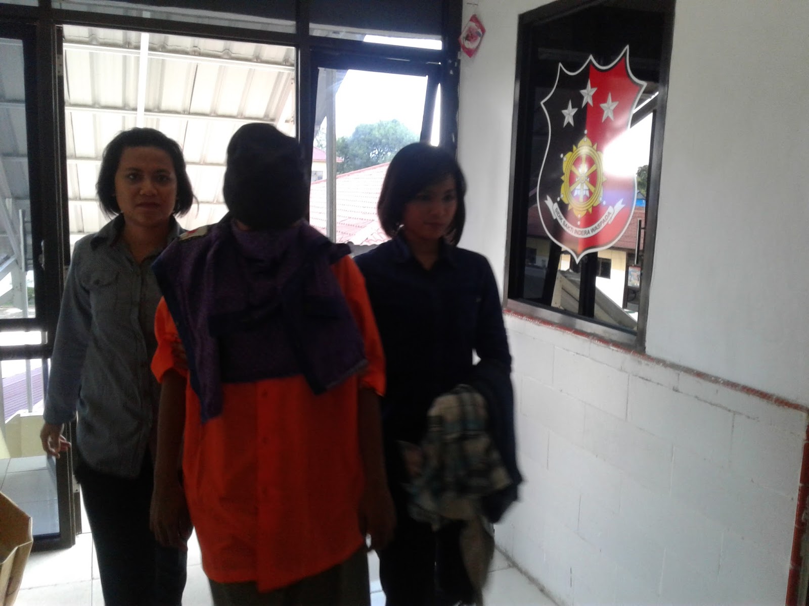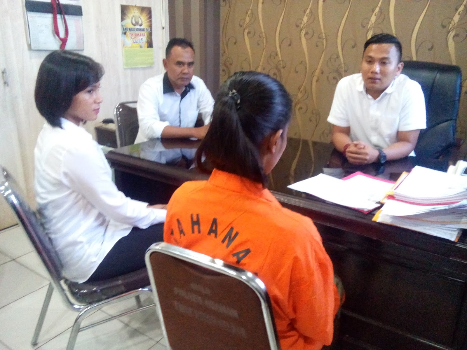 Kasat Reskrim AKP Bayu Putra Samara SIK mengitrogasi tersangka yang telah menjual anaknya kepada pria hidung belang. (Bawadi Sitorus/Asahan)