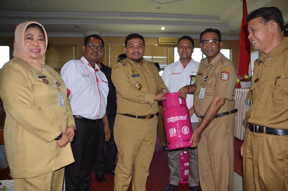 penyerahan secara simbolis gas elpiji ukuran 5,5 kg kepada PNS di Aula I Kantor