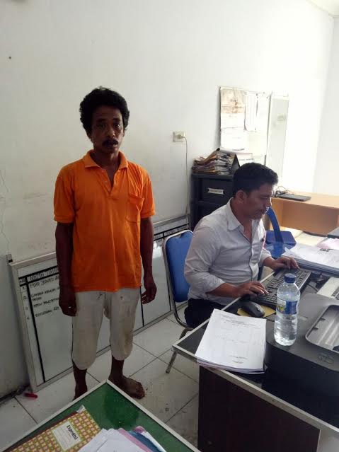 Pelaku penganiayaan yang buron 8 bulan saat berada di kantor polisi. (Siswanto/ Asahan)