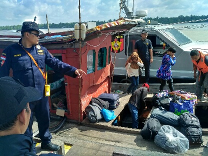 Ketika berpatroli, petugas mencurigai 3 sampan dengan membawa penumpang yang melebihi kapasitas. Saat dilakukan pemeriksaan, ketiga sampan tersebut membawa TKI ilegal dari Malaysia.