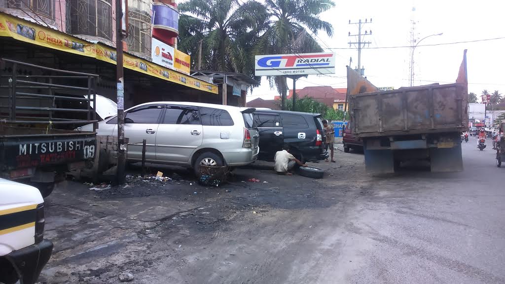 melintas di daerah inti Kota Rantauprapat, kami melihat limbah dari bengkel