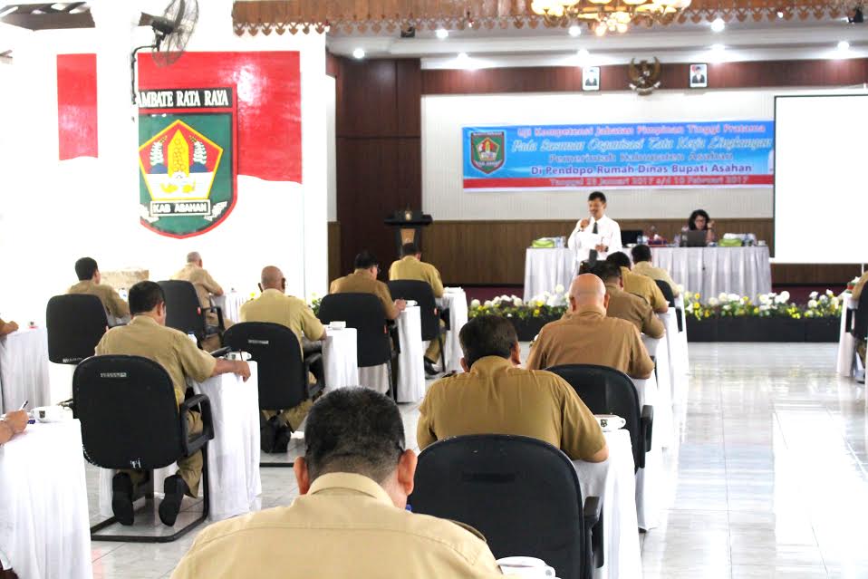KISARAN– Sebanyak 23 pejabat Pimpinan Tinggi Pratama Eselon II di jajaran Pemerintah Kabupaten Asahan mengikuti uji kompetensi yang diselenggarakan oleh tim asesor. Hasil uji kompetensi yang diikuti 3 asisten dan 20 pimpinan Satuan Kerja Perangkat Daerah (SKPD) akan menentukan apakah pejabat tersebut dirotasi, dan layak duduk di posisinya saat ini atau tidak.