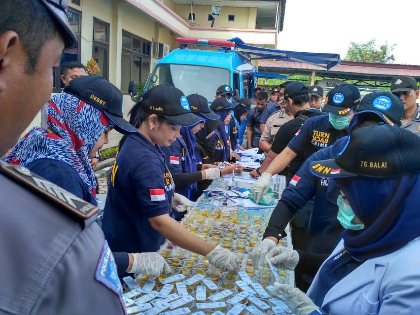 TANJUNGBALAI-Sebanyak 260 orang personil Polres Tanjungbalai di tes urine secara mendadak oleh Badan Narkotika Nasional Kota (BNN) Tanjungbalai, Kamis (12/1). Hasilnya, 6 orang personil dinyatakan positif menggunakan narkoba.