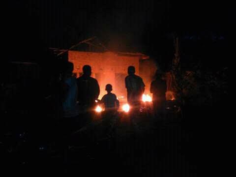 Warga sekitar yang mendengar suara teriakan minta tolong itupun langsung berkumpul dan mendatangi lokasi serta mencoba membantu memadamkan api dengan air dan alat seadanya.