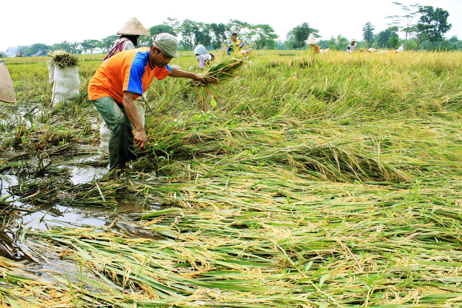 Untuk mencegah tanaman padi yang tumbang tersebut membusuk, para petani mengikat rumput padi agar dapat kembali tegak. Sementara padi yang sudah mendekati masa panen terpaksa dilakukan panen lebih awal.