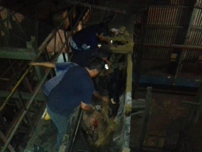 Sementara rekannya Feri Ardian Batu Bara yang melihat rekannya tergelincir, secara sepontan langsung berteriak meminta pertolongan kepada rekan kerja yang berada di bawah agar secepatnya untuk mematikan mesin.