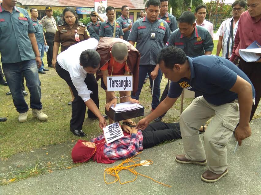 Pantauan wartawan, Fiqih yang merupakan warga Jalan Bani Hasim, Gang Haji Sopiah, Lingkungan I, Kelurahan Tebing Tinggi, Kecamatan Padang Hilir, Kodya Tebing Tinggi, memperagakan 20 adegan saat ia membunuh kekasihnya Tiara pada pertengahan Desember 2016.