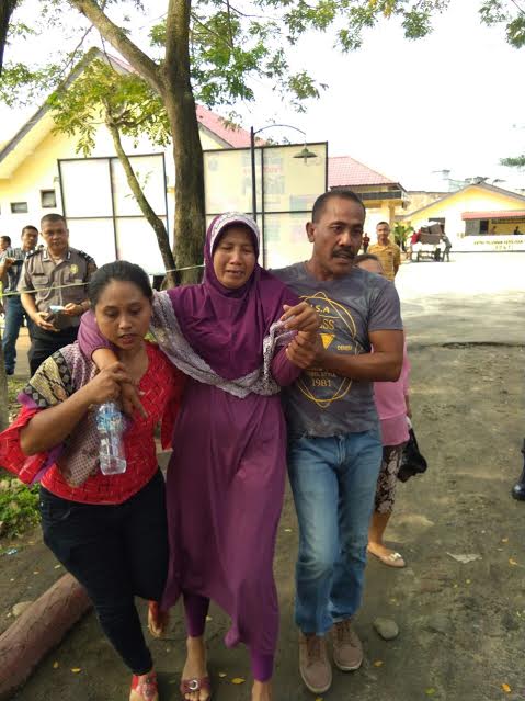Ibu kandung korban Nurwati (43) sempat histeris dan sempoyongan saat menyaksikan jalannya rekontruksi tersebut. Dia tampak terpukul begitu melihat tersangka Muhammad Fiqih Quranda memperagakan cara membunuh korban.