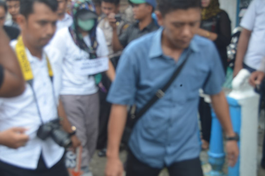 beberapa ibu rumah tangga menyaksikan rekontruksi.