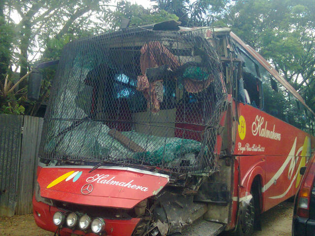 dengan Bus Halmahera yang diduga kurang hati-hati hingga menabrak bagian