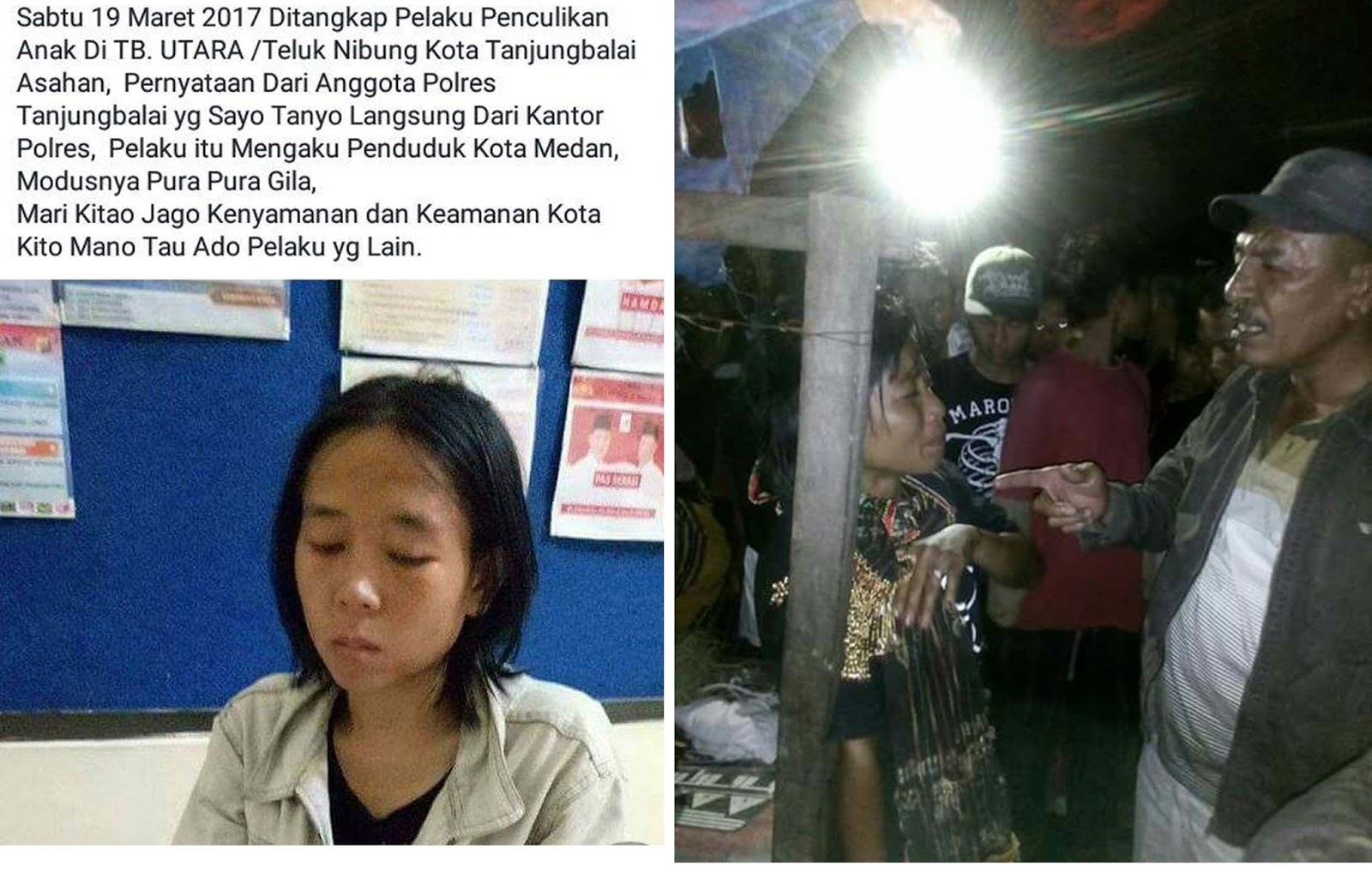 wanita tersebut diduga sebagai jaringan penculik anak. Sementara di Kota Pematangsiantar, seorang wanita yang juga diduga sebagai jaringan penculik anak diamankan. Namun karena wanita tersebut diduga gila (tidak waras) lalu dilepaskan oleh polisi.