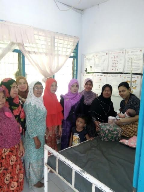 Ketua PKK Desa Silo Baru, Ny Yuslina Ahmad Sofyan bersama seluruh pengurus PKK Silo Baru lainnya yang selalu mempersiapkan kebutuhan Fitriani dan bayinya selama persalinan juga menyerahkan bingkisan perlengkapan bayi dan uang untuk biaya perjalanan pulang Fitriani.