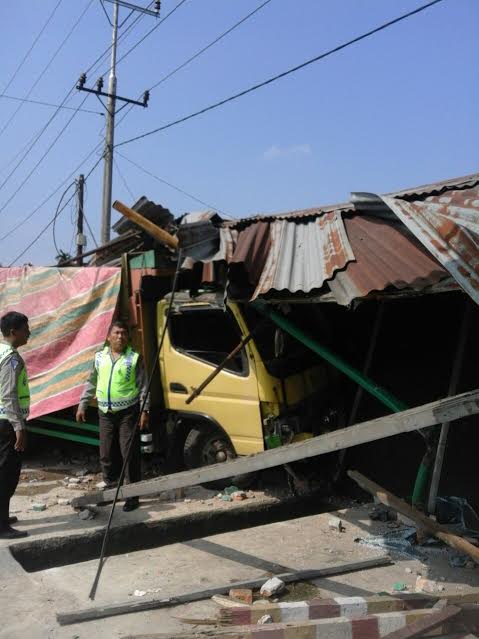“Dan si pengemudi saat hendak mengurangi kecepatan laju kendaraanya tidak dapat akibat rem blong, untuk menghindarai kecelakaan yang lebih fatal, pengemudi truk tersebut membanting stir ke arah kiri jalan,” sebut saksi mata di lokasi kejadian.