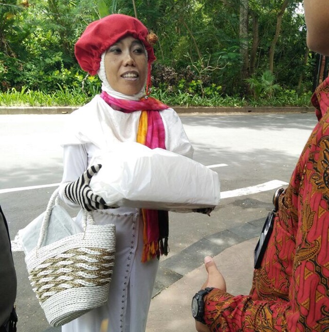 Dewi Palapa (41) diamankan Satgas Pengamanan VVIP di depan Hotel St Regis, Nusa Dua, Bali. Dewi mengaku ingin masuk ke hotel penginapan Raja Salman bin Abdulaziz Al Saud untuk memberikan kado yang dibawa.