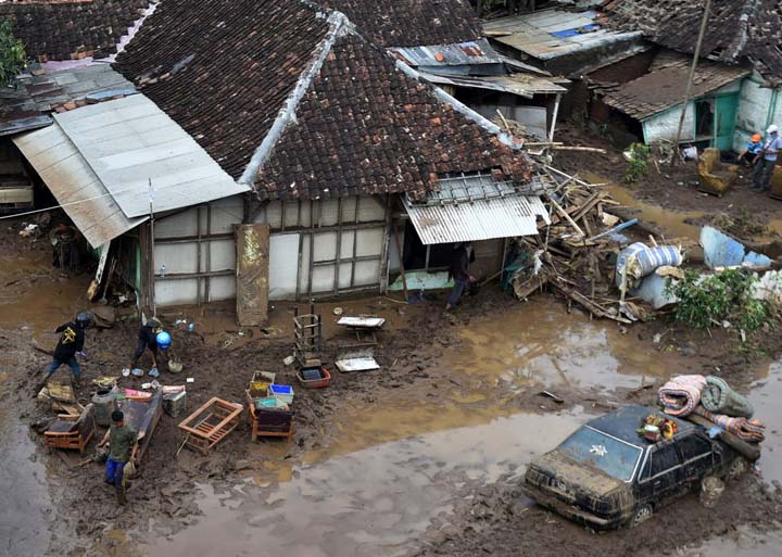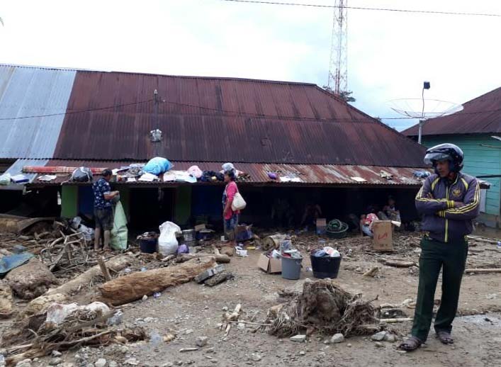banjir dan longsor masih berserakan di wilayah itu karena material dari