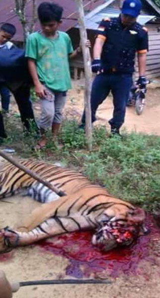 bukti-bukti di lapangan harimau mati akibat luka terbuka (bacokan) hingga