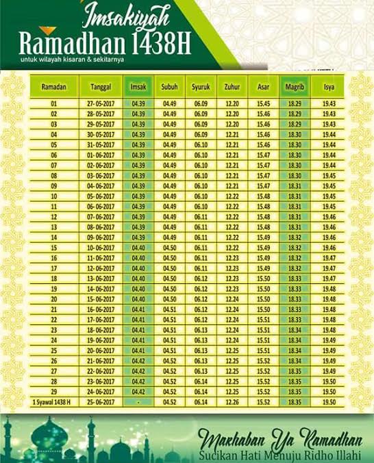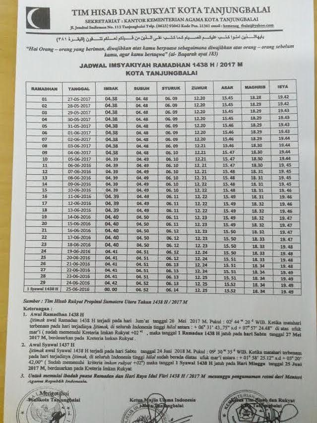 Jadwal Imsakiyah Ramadahan Wilayah Kabupaten Asahan