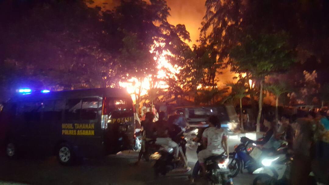 KISARAN-Musibah kebakaran terjadi di Asrama Satlantas Polres Asahan jalan Cokroaminoto Kisaran, Selasa (13/6) sekira pukul 19.30 Wib. Sebanyak delapan rumah hangus rata dengan tanah, sedang lima rumah lainnya terpaksa di rusak untuk memutus kobaran api.