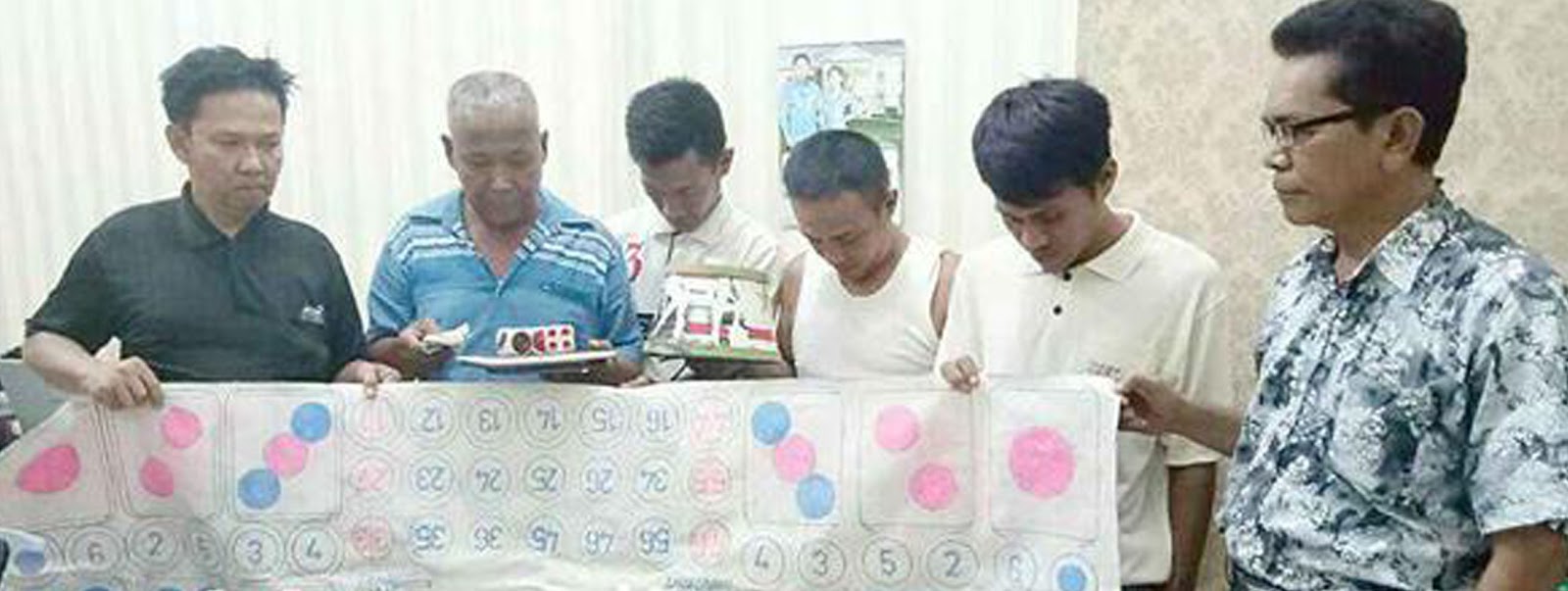 Keenam orang yang diamankan keseluruhannya laki-laki. Dari keenam tersangka dua orang merupakan bandar bernama Tarmudi (49) warga Dusun III, Desa Punggulan, Kecamatan Air Joman dan Suroyo (66) penggoncang dadu warga Dusun II, Desa Banjar, Kecamatan Air Joman.