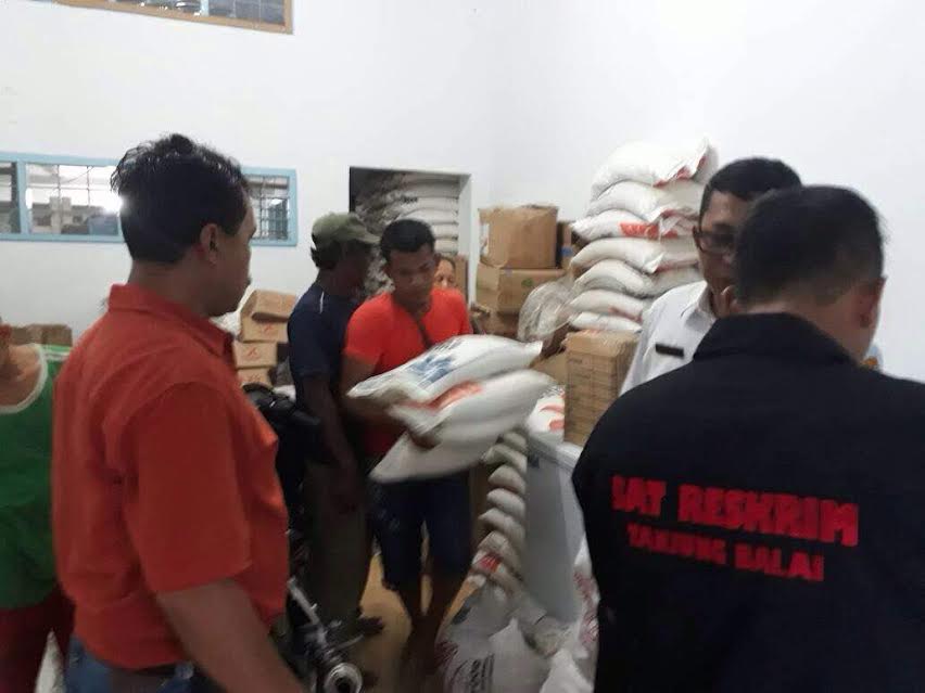 TANJUNGBALAI-Jajaran kepolisian Satuan Reskrim Polres Tanjungbalai bersama Dinas Perdagangan dan Perindustrian Kota Tanjungbalai (Disdagper), Rabu (21/6) menggerebek sebuah gudang dari toko sembako di Jalan Suprapto, Tanjungbalai yang diduga melakukan penimbunan beras bersubsidi.