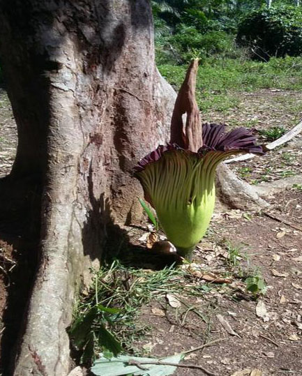 Kepada wartawan dia juga mengaku terkejut saat melihat bunga bangkai itu tumbuh persis dibawah pohon besar di tanah yang telah diwakafkan H Muhammad.