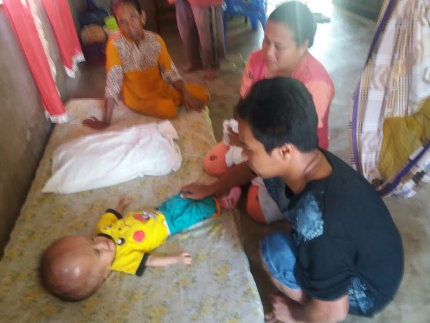 “Penyakitnya ini terjadi saat dia berumur enam bulan, saat itu putra kami ini sempat demam tinggi, muntah-muntah, hingga pernah kejang-kejang juga, karena itu kami langsung membawanya berobat ke Puskesmas, namun katanya putra bungsu kami ini cuma sakit demam dan masuk angin saja,” ujar keduanya.