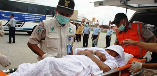 Seorang jamaah haji yang meninggal saat ditangani petugas medis. |
