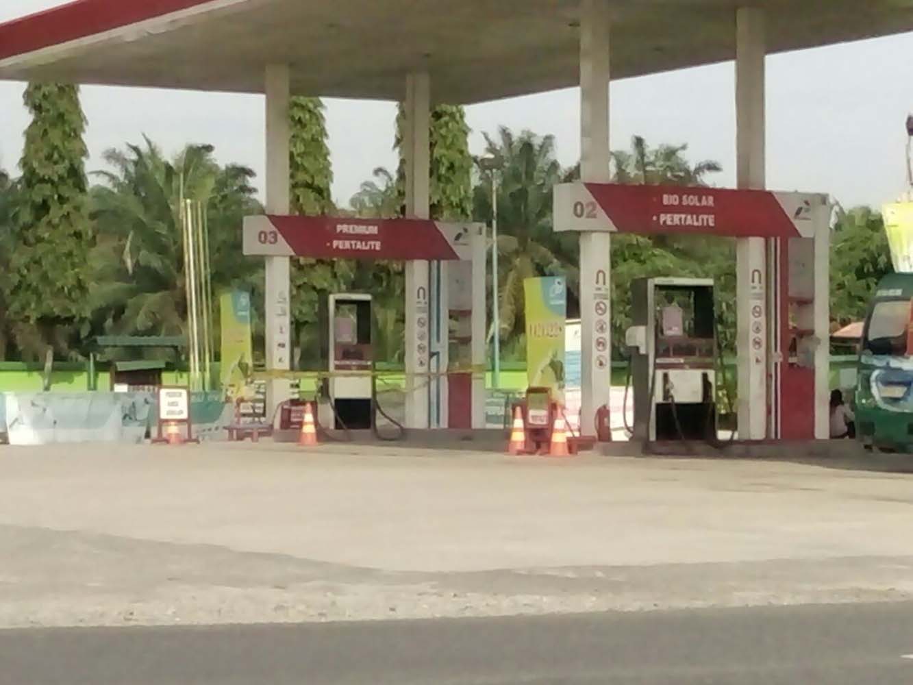 Di SPBU tersebut pihak kepolisian tampak memasang garis polisi disalah satu pompa yang melayani penjualan premium dan pertalite.