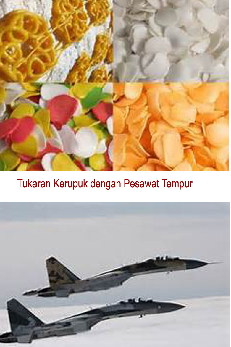 Kerupuk dari Indonesia akan ditukar dengan pesawat tempur Sukhoi SU-35 buatan Rusia. |