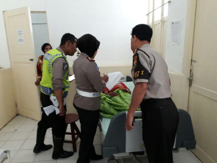 Petugas membawa korban truk terbalik ke rumah sakit |