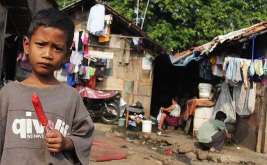 Seorang anak di pemukiman penduduk yang miskin di Sumut. |
