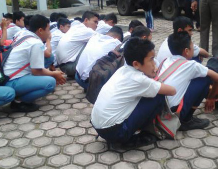 | Para pelajar yang terjaring razia |