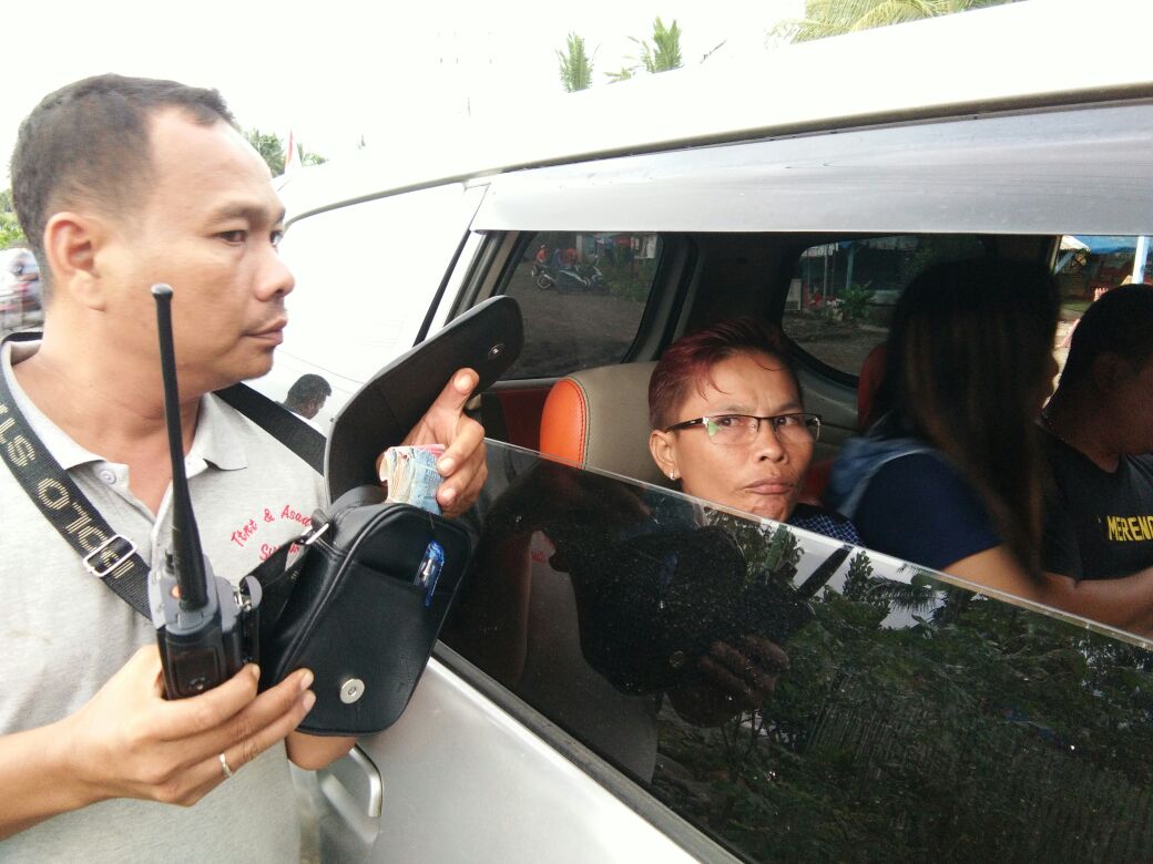 | Kedua tersangka di dalam mobil saat diamankan petugas. |