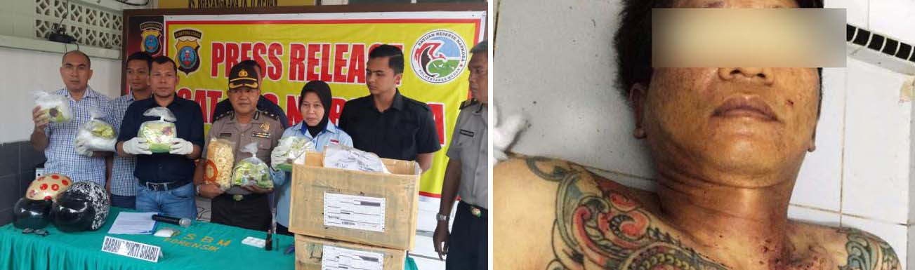 | Polisi memaparkan kasus penembakan bandar narkoba. (Bandar yang ditembak mati) |