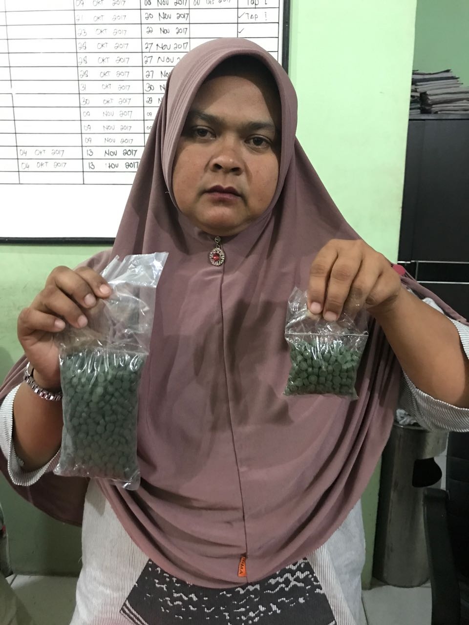 TASLAB NEWS, TANJUNGBALAI-Seorang ibu rumah tangga mengenakan hijab coklat, Maulizar (36), harus berurusan dengan Satnarkoba Polres Tanjungbalai. Pasalnya, warga Desa Cut, Kecamatan Titeue, Kabupaten Pidie, Provinsi NAD ini nekat membawa 1.200 butir pil ekstasi.