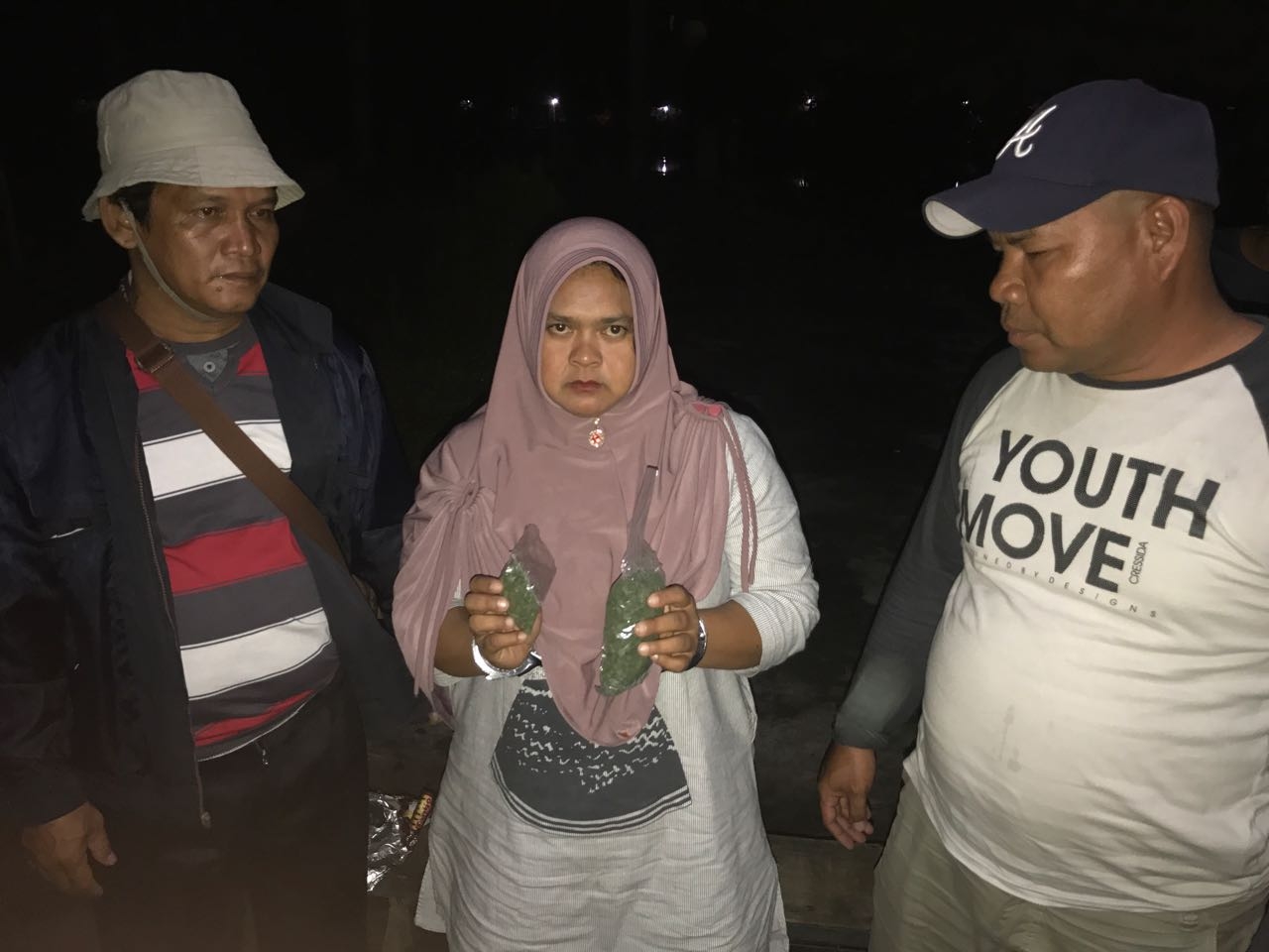 Kemudian tim Sat Narkoba melakukan pengejaran ke daerah Simpang Kawat Asahan. Wanita tersebut pun terlihat di dalam sebuah loket bus antar Provinsi sedang duduk sambil memegang sebuah tas.