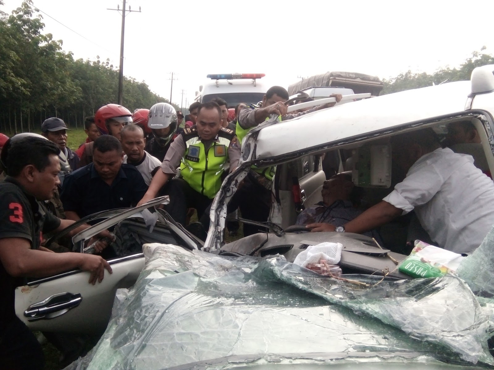 “Untung saja tadi ada warga yang lewat dia bawa alat gerenda dan mesin genset. Kalau tidak korban bakal lama terjepit didalam mobi,” kata Ismail salah seorang warga di lokasi kejadian.