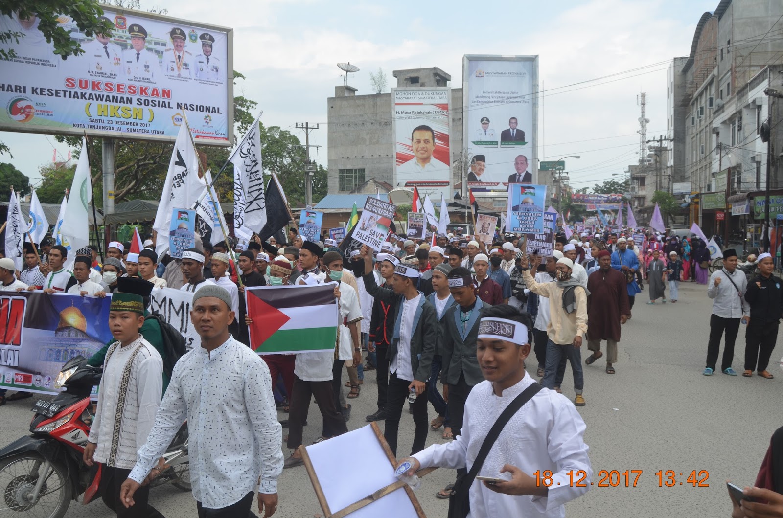 Ribuan warga Tanjungbalai menggelar aksi demo menentang penyataan Presiden Amerika Donald Trump |
