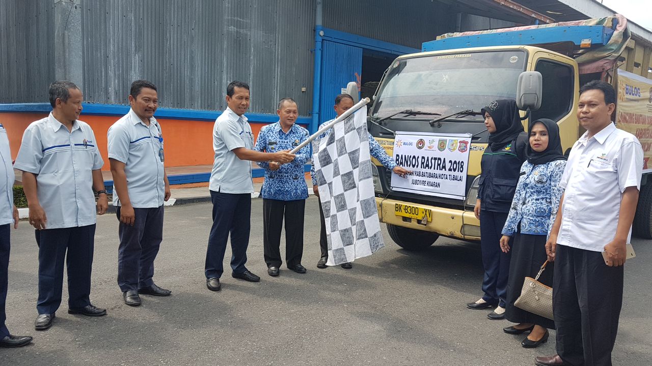 | Kepala Dinas Sosial bersama Bulog saat melepas Bansos Rasta 2018 di Kabupaten Asahan. |