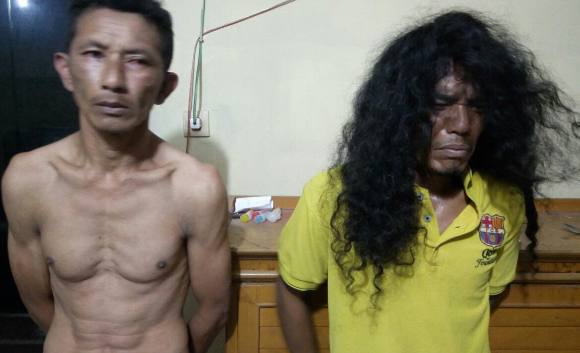 Gondrong dan Ijun tersangka narkoba asal Tanjungbalai yang diringkus Polres Asahan. |