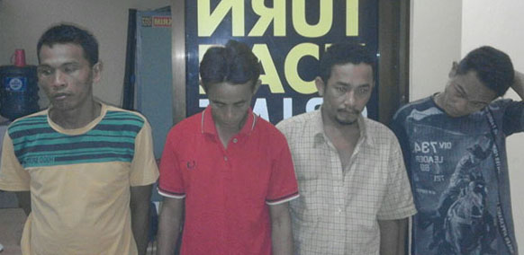 penggerebekan tersebut polisi meringkus empat laki-laki yang diduga hendak