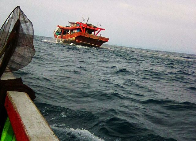 Saat dipergoki, puluhan kapal itu sedang menarik pukat ikan