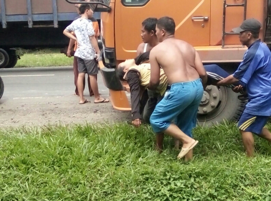 bersamaan, datang truk tronton BK 8153 CU yang dikemudiakan Ngatimin warga Deli