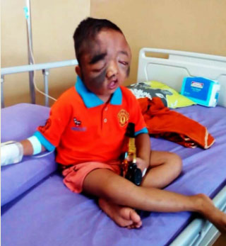 Rahmad bocah penderita penyakit aneh dari Tapteng saat di rumah sakit. |