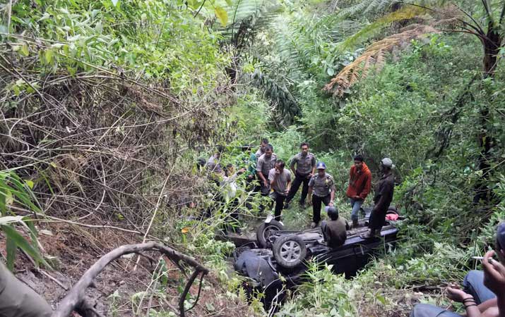 Mobil Daihatsu Xenia BK 1886 KY terjun ke jurang. Akibat kecelakaan tersebut,